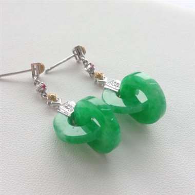 冰种18k金满绿平安扣耳坠一对
