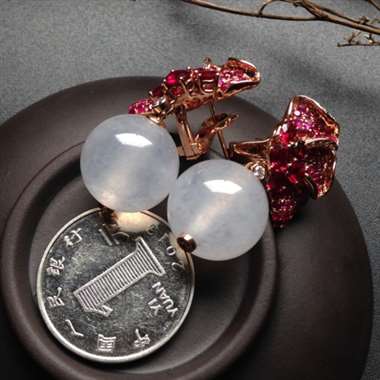 冰种椿底耳坠 18K金镶嵌 裸石16毫米