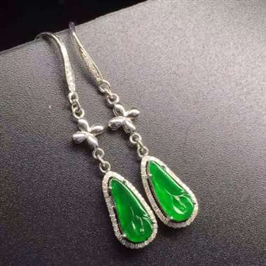 冰种满绿完美18k金镶嵌耳坠。尺寸:10.2*5.2*1.9
