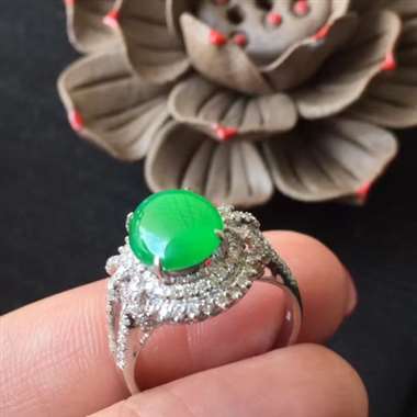 阳绿蛋面戒指,真金真钻镶嵌,完美,种水超好,玉质细腻