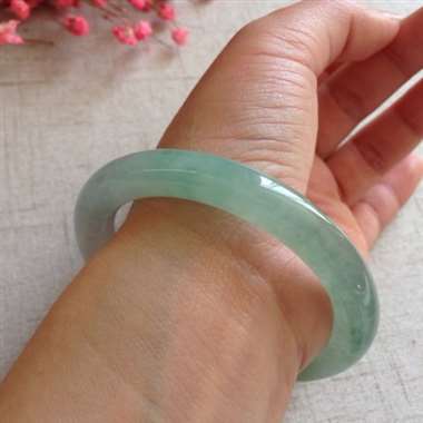 111820A货翡翠完美水润淡春彩正装手镯#cy,种水好,颜色清爽,版型厚装,质地细腻,佩戴清新秀雅