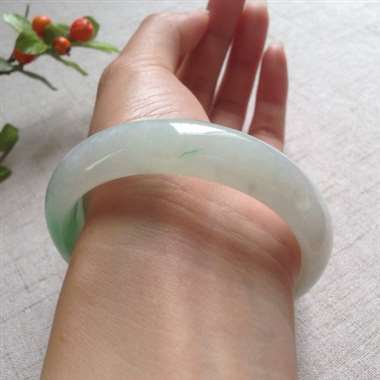 111814A货翡翠完美水润淡春彩正装手镯#cy,种水好,颜色清爽,版型厚装,质地细腻,佩戴清新秀雅