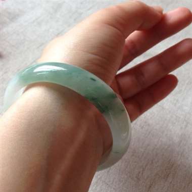 冰润正装57.6手镯,起胶!天然石纹,打灯可见,不影响上手效果,通透水润,冰清玉洁