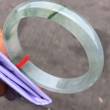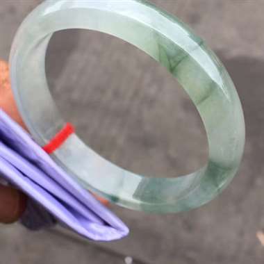 正圈,冰种飘花,尺寸57.6-14.9-7.3,冰润通透,种老起光,飘花灵动飘逸,底子干净清爽,完美