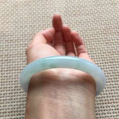 翡翠A货:糯种.飘绿.贵妃手镯.料子细腻清爽.水头十足.有点小纹.不扣.可忽略.尺寸:57.5mm1