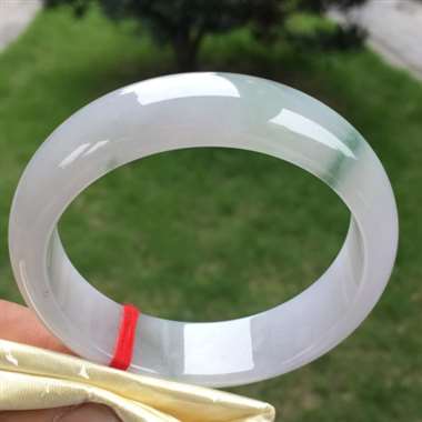 翡翠A货60圈口平安镯 宽边手镯,飘蓝花,种水足,料子细,完美无纹裂!佩戴上手高档漂亮!规格:60.