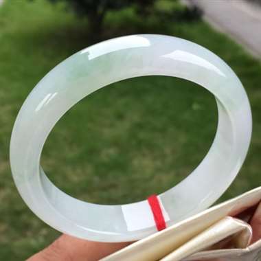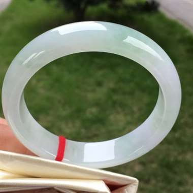 正圈,糯冰种飘绿,尺寸56.0-13.6-7.8,水润冰透,质地细润,种老,水头足,完美