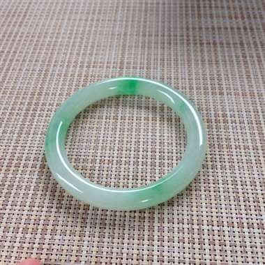 正圈,飘绿,尺寸57.3-13.5-8.0,水润细腻,颜色亮丽,完美