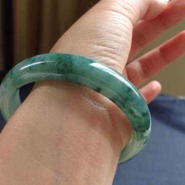 冰飘绿正装手镯,有条微纹,打灯可见,不影响佩戴效果!
