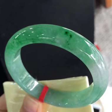 翡翠A货50.8圈口手镯,白冰飘花带黄皮,完美圆条,质地纯净冰透起胶!
