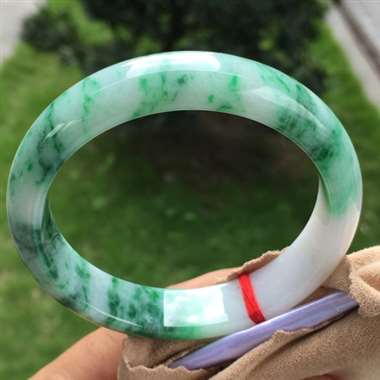 翡翠A货55圈口手镯,正装,冰底飘花,有棉絮!