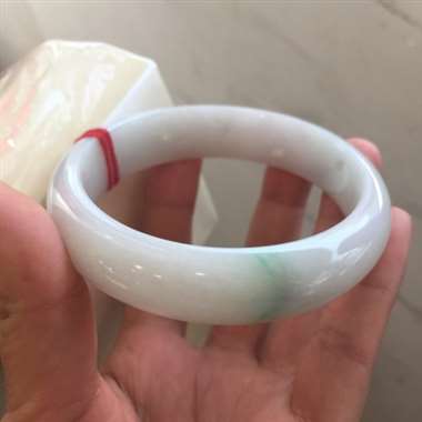 翡翠A货:糯种.正圈.淡紫淡绿.料子清爽.细腻水头十足.干净完美无瑕.尺寸:56.3mm13.3mm