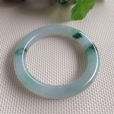 天然翡翠A货58.5圈口手镯,糯种飘花正装圆条手镯,这种料子最近卖的不错,蓝花绿花都有!