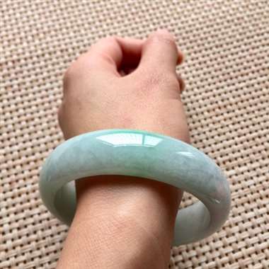 111402完美老种水润春彩宽边正装圈手镯,料老种好,颜色漂亮,质地细腻通透,无裂,条形大方,胶感足