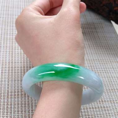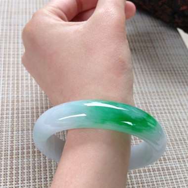 17041818#圆条尺寸:55.2x10.5x10mm 细润翠色镯,很温润,翠色抢眼,完美推荐
