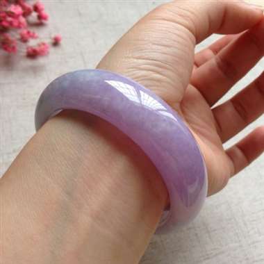 冰润春彩紫罗兰正装手镯,有晶体纹,属翡翠天然结构,无抠感,浪漫唯美