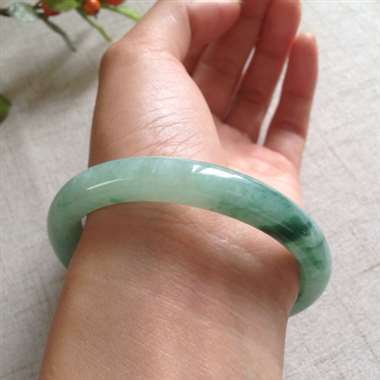翡翠手镯 糯种浅绿底飘花手镯 底细干净 完美无裂