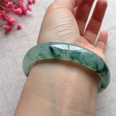 17041724#贵妃尺寸:54.6x11.6x6.3mm短:46mm 冰绿花镯,种老水足,绿花品相