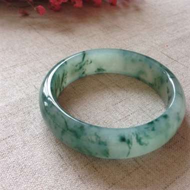 高冰飘花厚装宽版正装手镯,无纹裂,浅浅的底色色,飘花就像湖边柳絮,令人沉醉