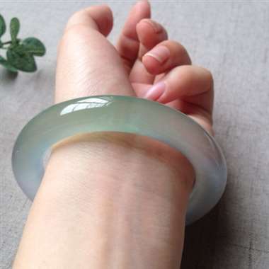 冰绿底正装手镯,规格:58.4*15.9*8.2,,玉质细腻,整圈浅浅的绿,实物更好看!
