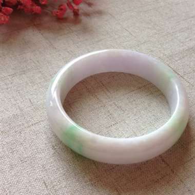 冰润紫罗兰飘阳绿正装手镯,有纹有抠感,淡淡的紫色飘着艳丽的绿色,泌人心脾,实物更漂亮