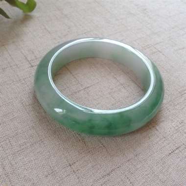 冰飘绿正装手镯,口径:54.1*11*7.6,底子细腻,浅浅的绿色飘逸着,品相很清爽!
