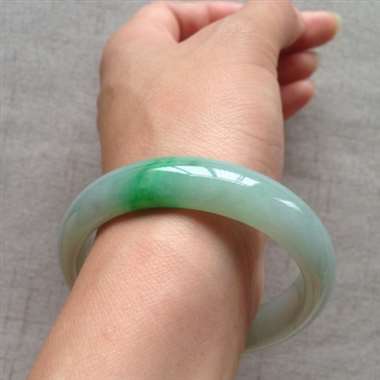 111711A货翡翠完美好种飘绿正装手镯,质地细腻,飘绿清爽,色泽鲜艳,版型大方,尺寸57.5-12