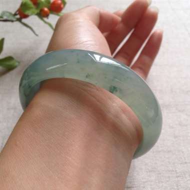 圆条翡翠手镯 a 白底青缅甸玉石手镯