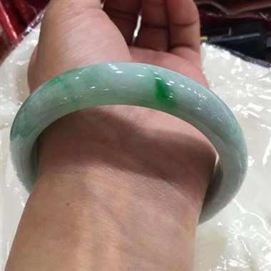 飘花 贵妃手镯52.5# 整体有底色 飘花 部分有点深色 内圈花边有点不平 佩戴漂亮 无纹裂 圈口