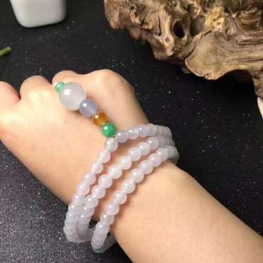 翡翠A货水润淡绿佛珠 老坑料,种水足,完美度高!佩戴高雅大方!规格:10mm*60颗 重量:113.