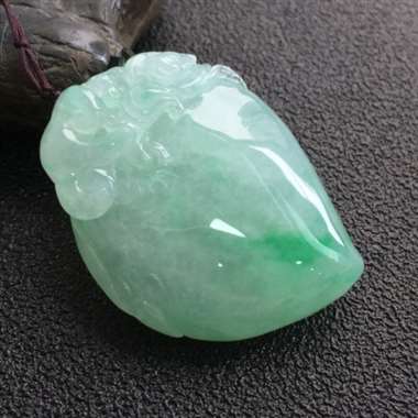 冰种飘阳绿寿桃,完美,种好色辣。尺寸:36.5-28.2-11.0