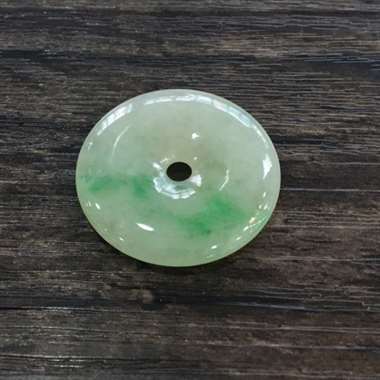 翡翠A货:高冰种.飘绿花.如意.料子细腻清爽.种老起光.冰润通透.饱满厚装.完美.尺寸:33.9mm