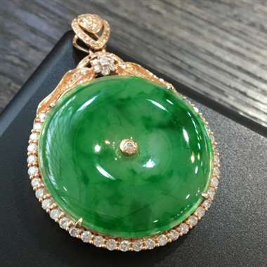色辣平安扣,完美色阳,底庄细腻,18K玫瑰金足反大钻镶,经典大方,豪华大气,性价比高,推荐,尺寸48
