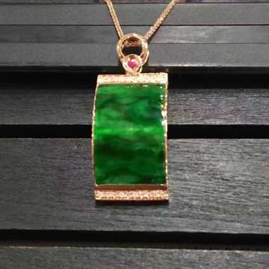 满绿素牌,18k金伴靓钻伴红宝镶嵌,简约大方,低调奢华,性价比高,特惠价,超值,推荐