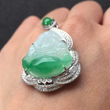 X阳绿如意吊坠,真金真钻镶嵌,完美,种水超好,玉质细腻