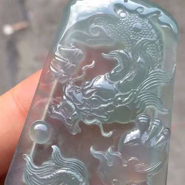 高冰带底色龙牌:完美无裂纹,种老起胶,雕工精致,色泽漂亮,饱满,尺寸:55.6/39/5.7 ,tm