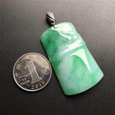 J阳绿叶子吊坠,真金真钻镶嵌,完美,种水超好,玉质细腻