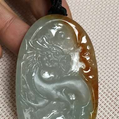 翡翠A货:冰种.黄翡龙牌.冰润通透.雕工精细.龙身磨砂.大件厚装.完美.无纹裂.