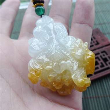 111708老种黄翡招财白菜挂件~百财聚来。种老,玉质细腻,颜色艳丽出彩,有避雕修饰,瑕不掩瑜,佩戴