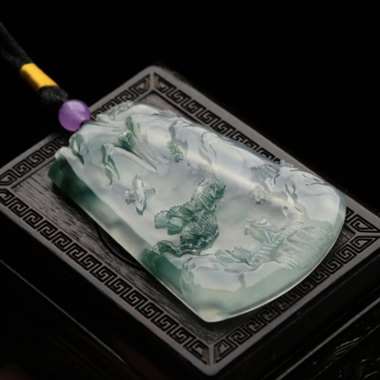 -天然A货老坑冰种飘蓝花万古长青挂件 020-076-长58.26 宽39.44 厚6.13 (单位mm)27.02g中国地质大学国检老坑冰种飘蓝花万古长青翡翠挂件选用老坑翡翠原料,质地细腻通透,作品由玉雕师精雕细琢,气势磅礴,意境深远,成为一件精美的艺术品。-原材料产地:缅甸。