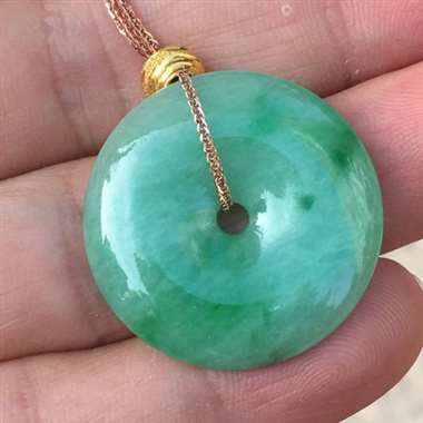 阳绿平安扣,完美色阳,饱满大件,18K玫瑰金南非真钻镶,低调不失档次,性价比高,推荐,尺寸48.9*