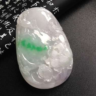 冰种 叶子 冰种 整体有底色 质地细腻 水润 种老 水头足 雕刻工艺精湛背面有点棉线 不影响 尺寸
