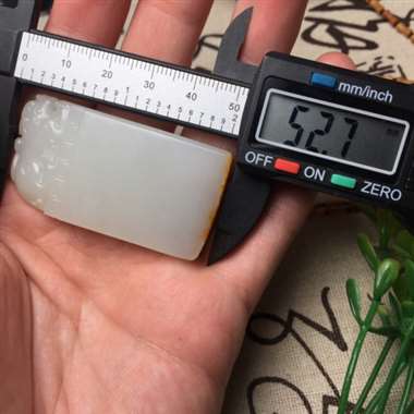 36.5克羊脂白度 质地细腻 油性一流 天然枣红洒金皮 手工雕琢 精湛苏工 瑞兽牌头 古韵十足 羊脂孤品 高端演绎 收藏品鉴