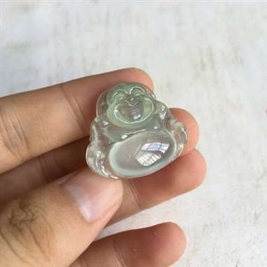 起光 笑佛 冰种 整体有底色 质地细腻 冰透感好 种老 水头足 光感十足 底子干净 上身佩戴漂亮 无纹裂 尺寸 26.4x29x6.2 毫米