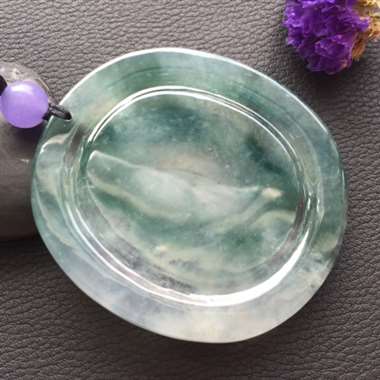 翡翠A货:冰种飘花.如意.冰润通透.种老水头十足.饱满厚装.雕工精简.料子清爽干净.细腻.完美无瑕.