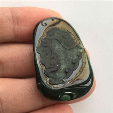 特惠款,老坑种完美墨翠龙牌,黑度一般,打灯全绿。