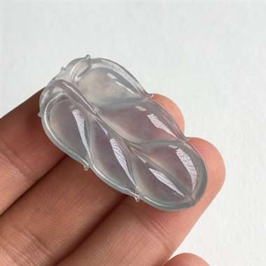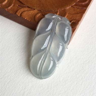冰种 叶子 起光 冰种 整体有底色 质地细腻 冰透感好 水头足 起光 无纹裂 尺寸 41x23x6 毫米