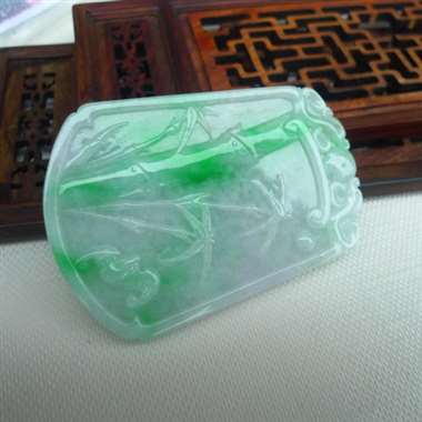 糯种飘绿鱼鸟牌挂件 色泽靓丽 底细干净