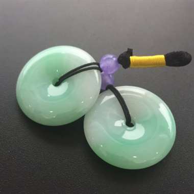 冰种飘绿完美平安扣一对。尺寸:28.6-6.3