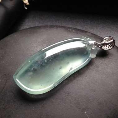 冰种飘绿无事牌:有小侧纹,种水好,玉质细腻,雕工精致,色泽漂亮,饱满,尺寸:44.6/28.7/3.